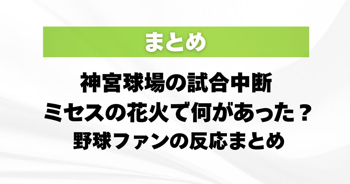 2026年4月18日と19日のヤクルト対巨人戦では、隣接するMUFGスタジアムでMrs. GREEN APPLEのライブが行われていて、花火演出のタイミングで神宮球場の試合が一時中断しました。